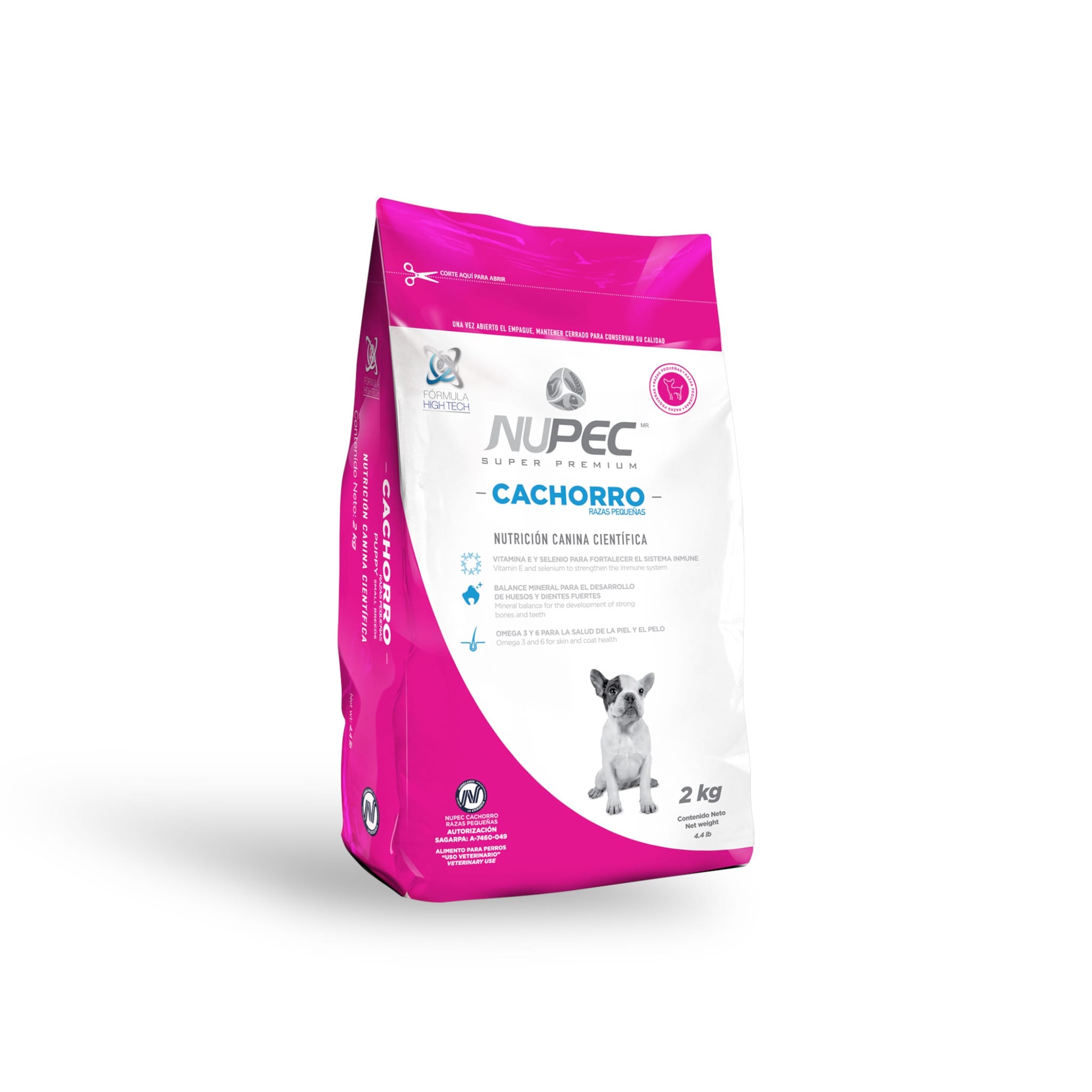 NUPEC CACHORRO RAZA PEQUEÑA Estamos conscientes de que un cachorro de raza pequeña alcanza su etapa adulta en menor tiempo (de 7 a 12 meses), y que tiene un tracto digestivo con una capacidad limitada. Por ello este alimento contiene la densidad nutricional y energética que les ayuda a potencializar el crecimiento que definirá su calidad de vida adulta.