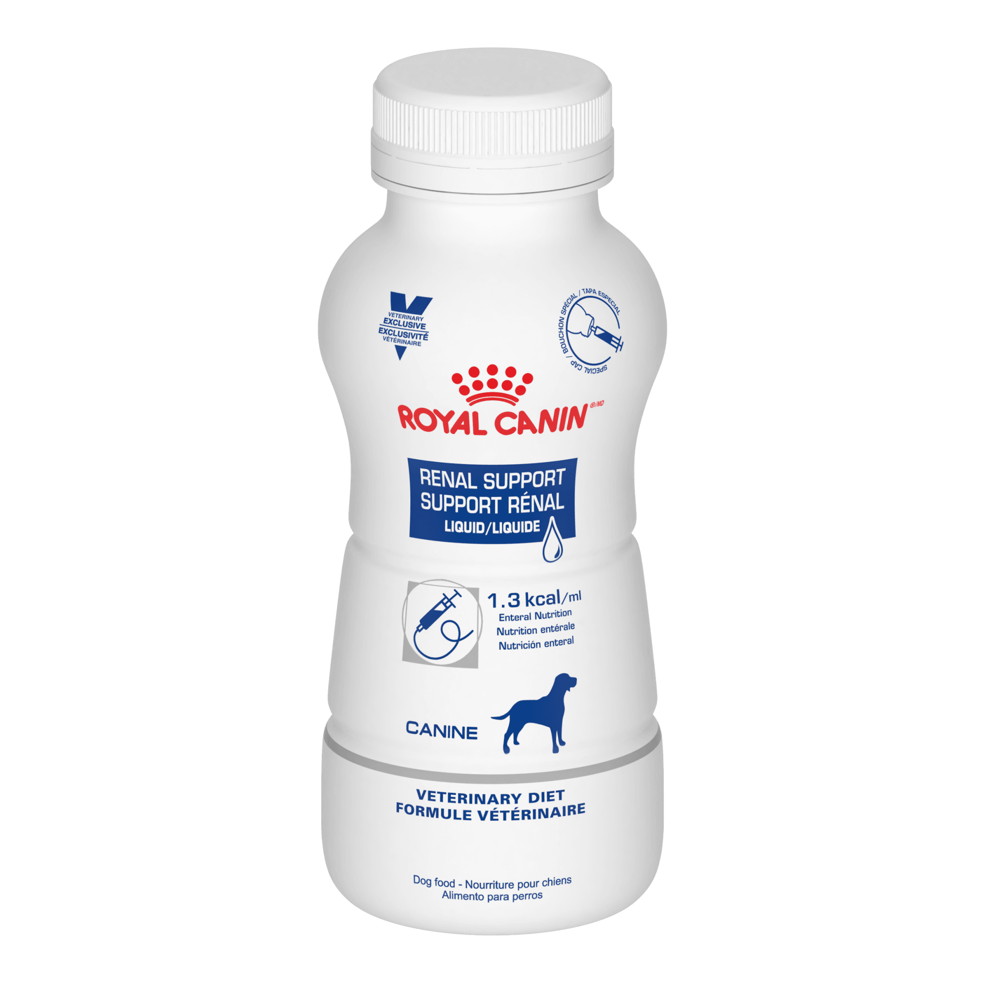 ROYAL CANIN DOG RENAL SUPPORT LIQUIDO Alimentación por sonda para perros adultos en posoperatorio y cuidados intensivos o con convalecencia, manejo de todas las etapas de la enfermedad renal crónica. Bajo cuidado veterinario.